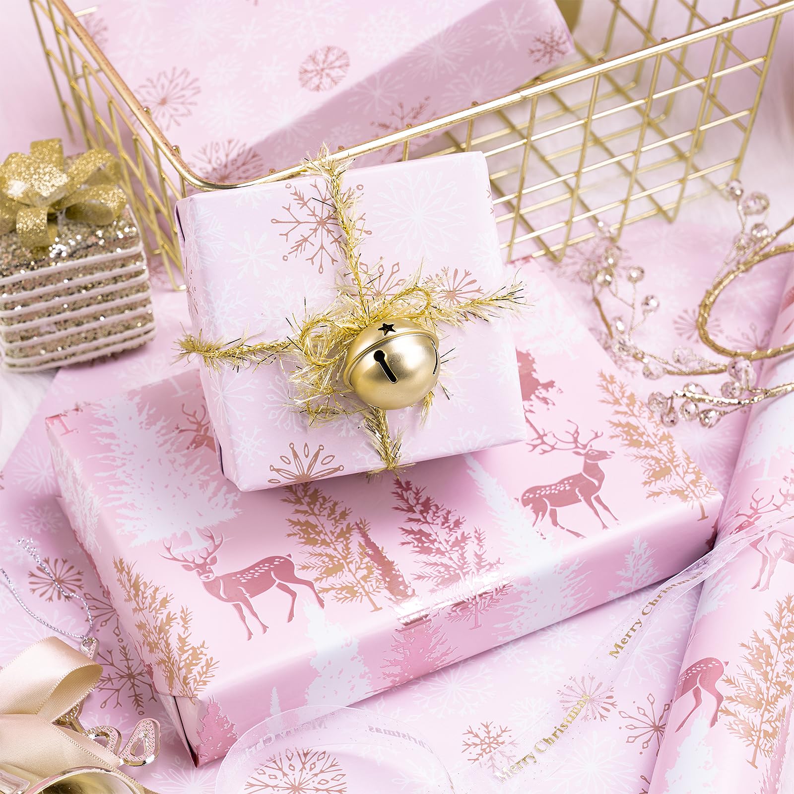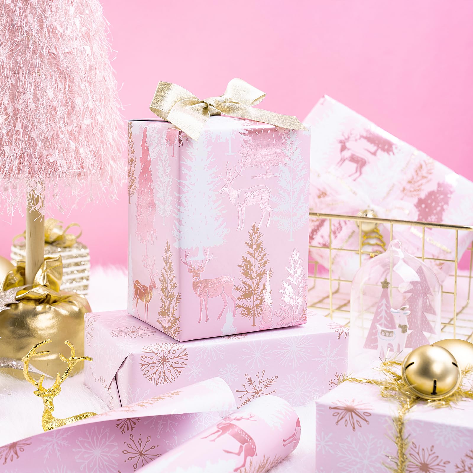 - Perfect for Holiday Gifts: Ideal for wrapping Christmas gifts, holiday presents and special occasion gifts, this wrapping paper is especially perfect for girls. The charming reindeer and tree design, combined with the soft pink snowflakes, brings warmth and elegance to your gifts