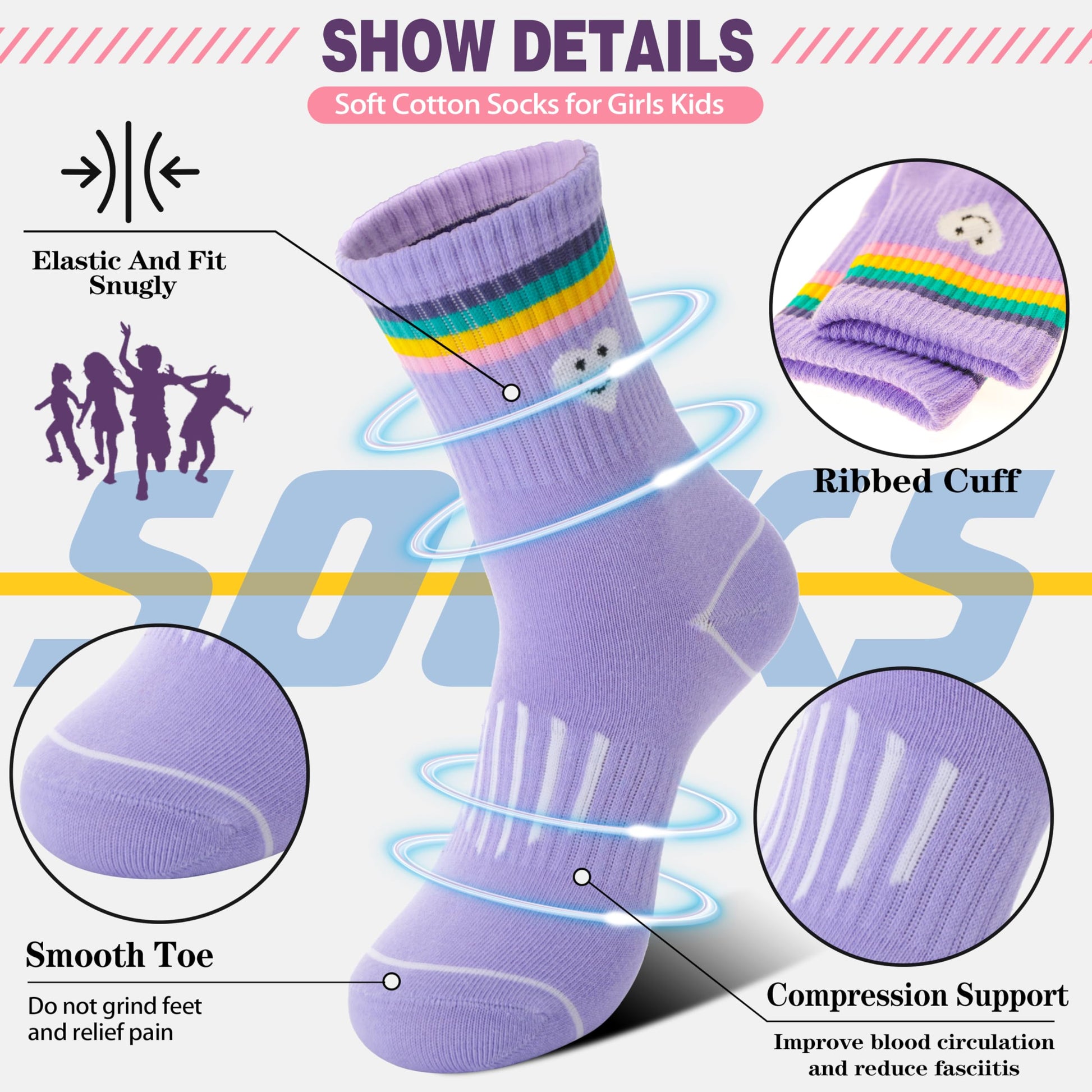 - Package: 6 pairs of athletic sports socks tailored for active young girls. The assortment of colors adds a playful touch to any outfit, enticing kids to wear them with enthusiasm