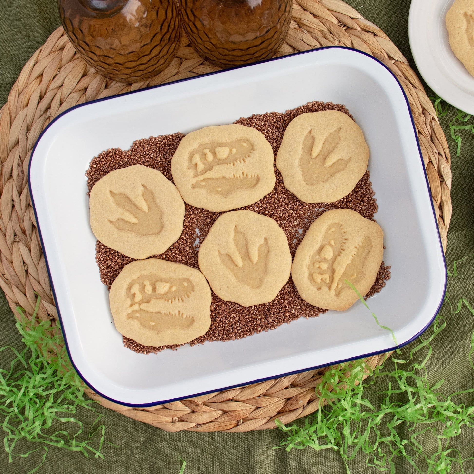 Set of 2 T-Rex Footprint and Skull Fossil cookie cutter, 2 pieces - Bakerlogy