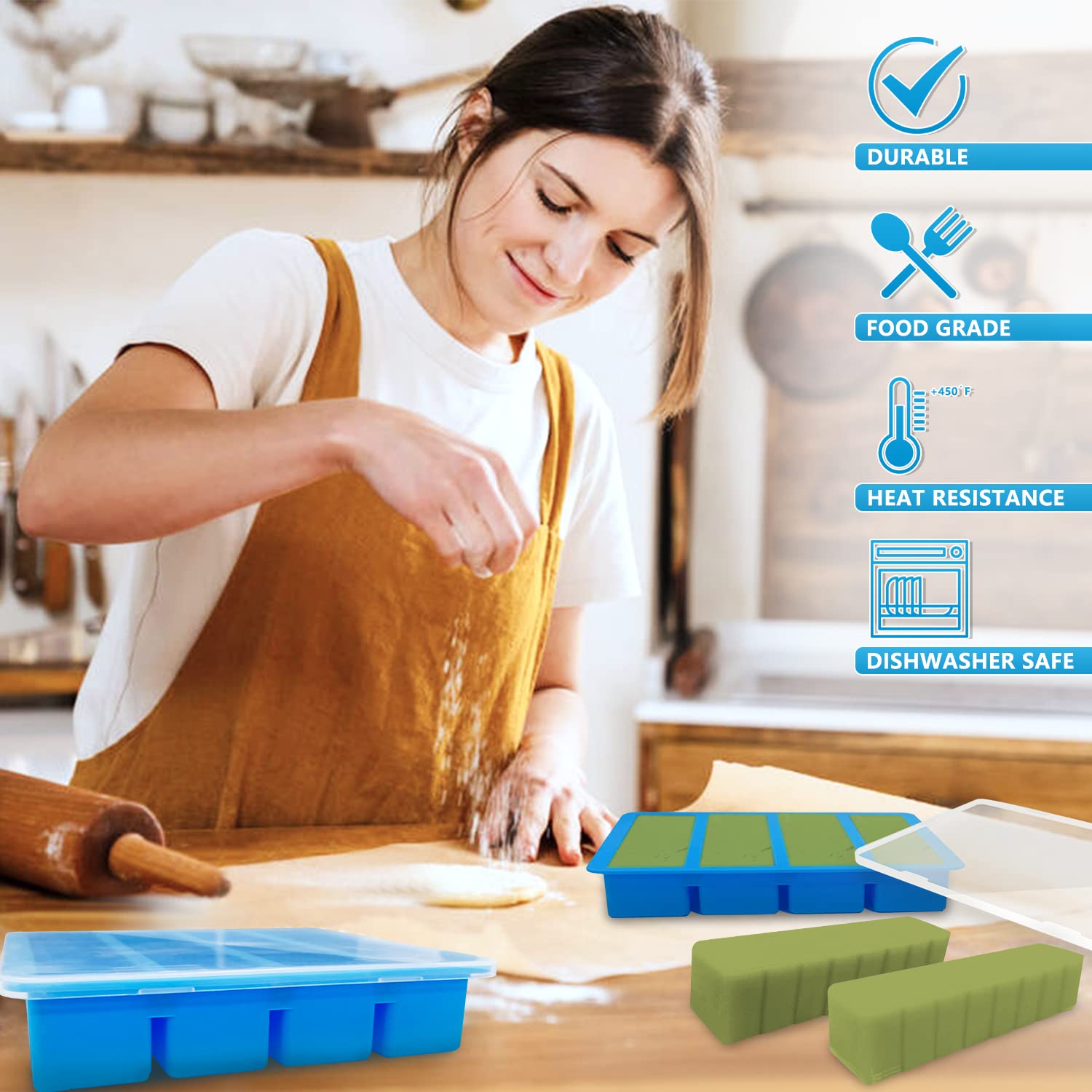 Silicone Butter Mold with Lid, Walfos Non-Stick Tray Fits Standard Butter Stick Size, Large Cavity, Holds 8 Tablespoons, Ideal For Soap Bar, Energy Bar, Cake, 2 Pack