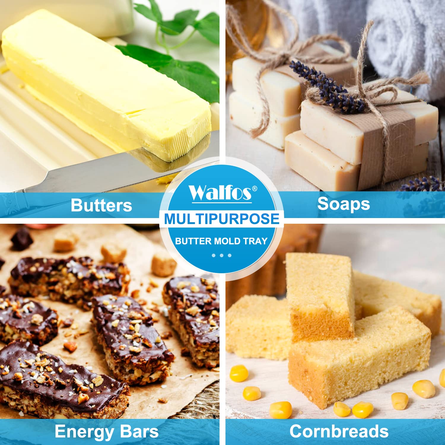- EASY TO RELEASE & CLEAN: WALFOS flexible silicone butter molds offer a non-stick surface that allow the butter sticks to pop right out with a little push from the bottom. Simply hand wash it with warm soapy water and it will look as good as new. Dishwasher safe. Bulit to last.