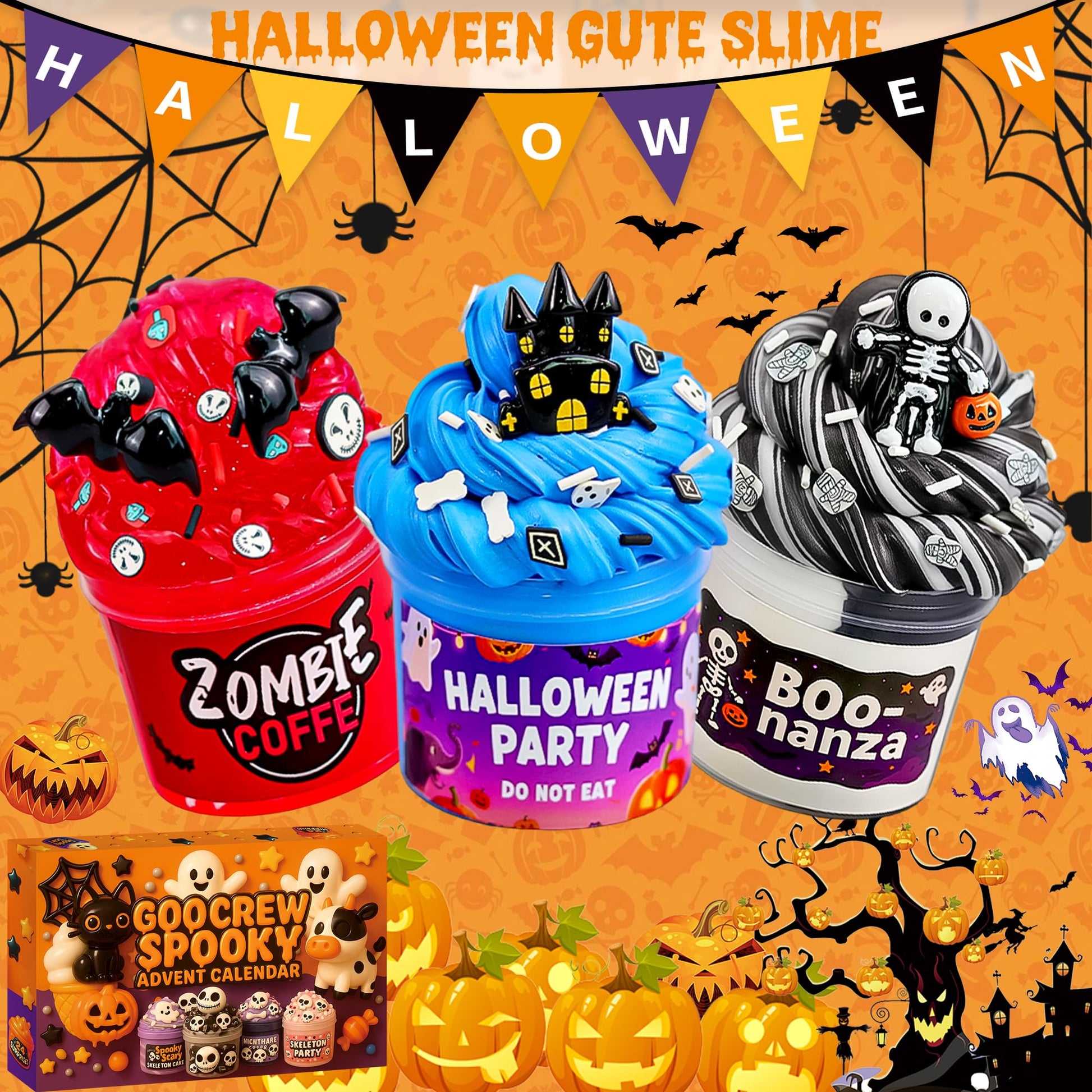 - 【GOOCREW-Themed Countdown】Every day, kids will find a unique slime toy or collectible kit to celebrate the countdown to Halloween and Christmas with excitement and joy.