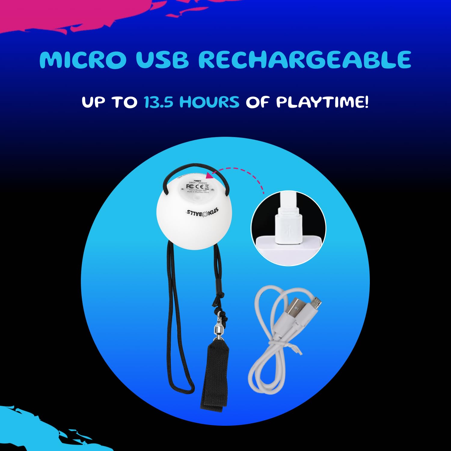 - Now with 22 color & light modes, Spinballs Glow.0 offers 21 vibrant presets and 1 customizable setting for endless possibilities. USB rechargeable, it fully charges in under 2 hours for up to 20 hours of fun!