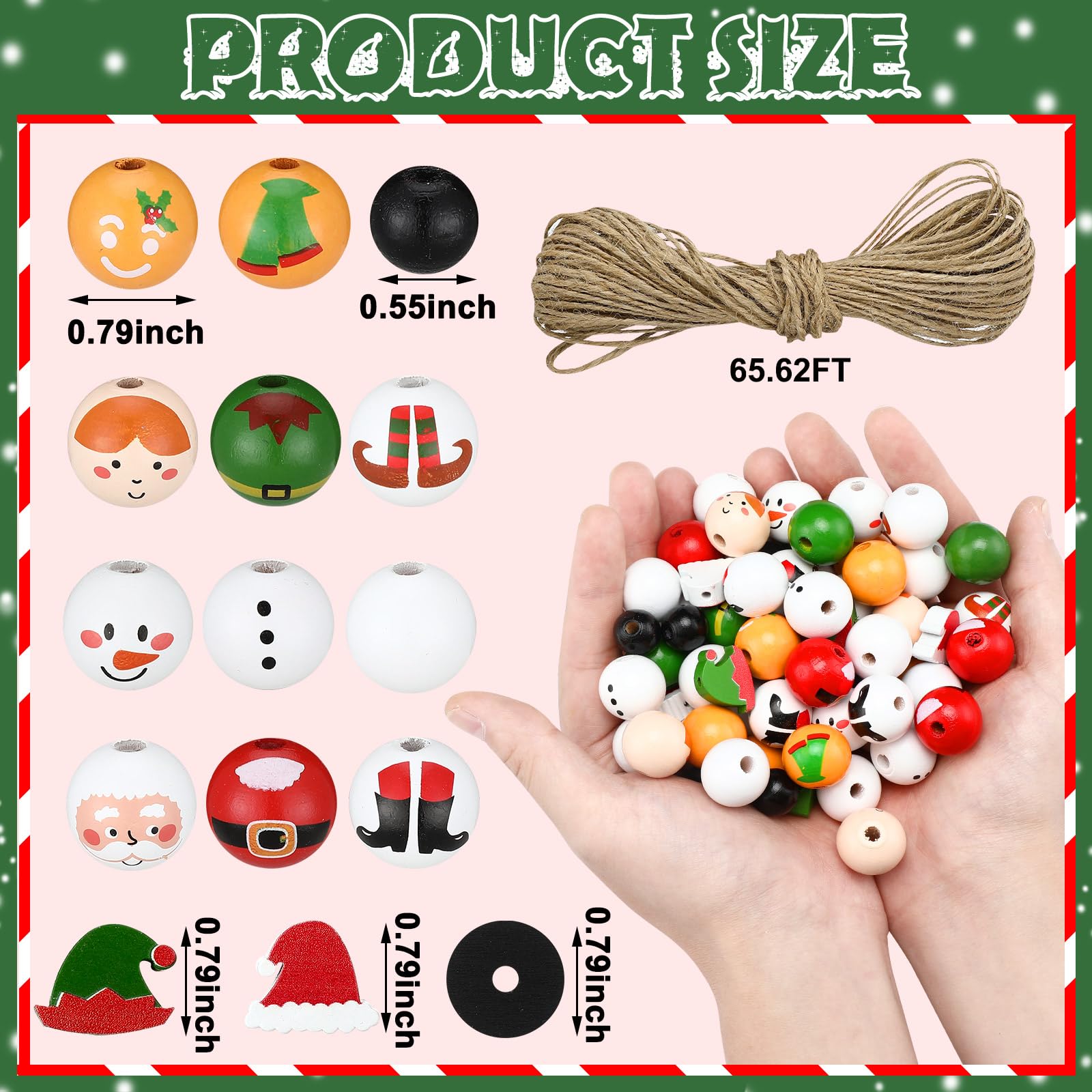 Suzile 150 Pcs Christmas Wood Beads with Twine Xmas Santa Gingerbread Man Snowman Elf Wooden Bead Farmhouse Rustic Round Wooden Beads for Crafts DIY Christmas Winter Party Supplies Decor Ornaments