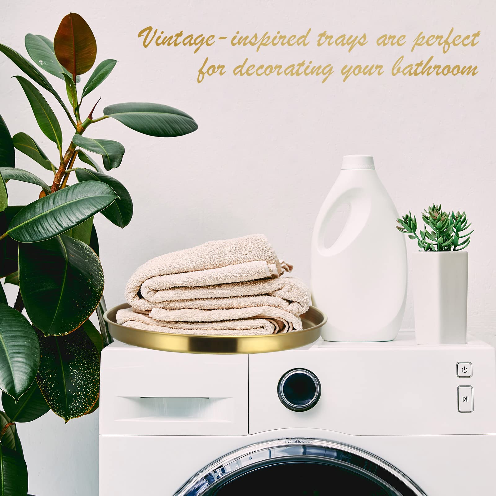 - Proper Size: circle gold perfume tray measures approx. 12.2 inches/ 31 cm in diameter and 1.06 inches/ 2.7 cm in height, you can use the circle gold tray as a jewelry holder, cosmetic organizer, coffee table tray, key holder, candle tray, whiskey display tray, glasses tray; You can also turn gold round tray upside down and use it as a stand