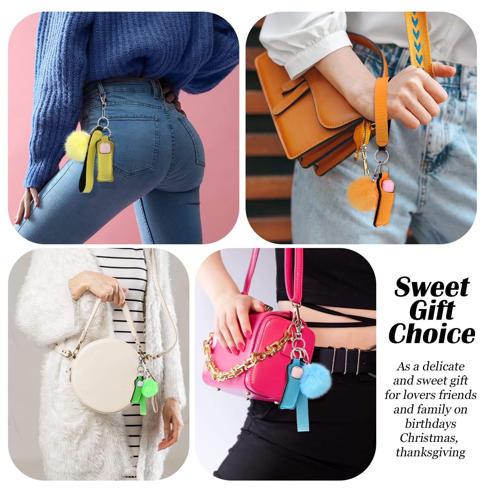 - Colorful Lip Balm Holder Keychain Set: lip balm holder keychain set comes with 20 lip balm holder keychains, 20 colorful keychain wristlet lanyards, 20 fur pom poms keychains, 20 silver metal keychains, available in 20 different colors for you to choose and match with a variety of clothes and bags