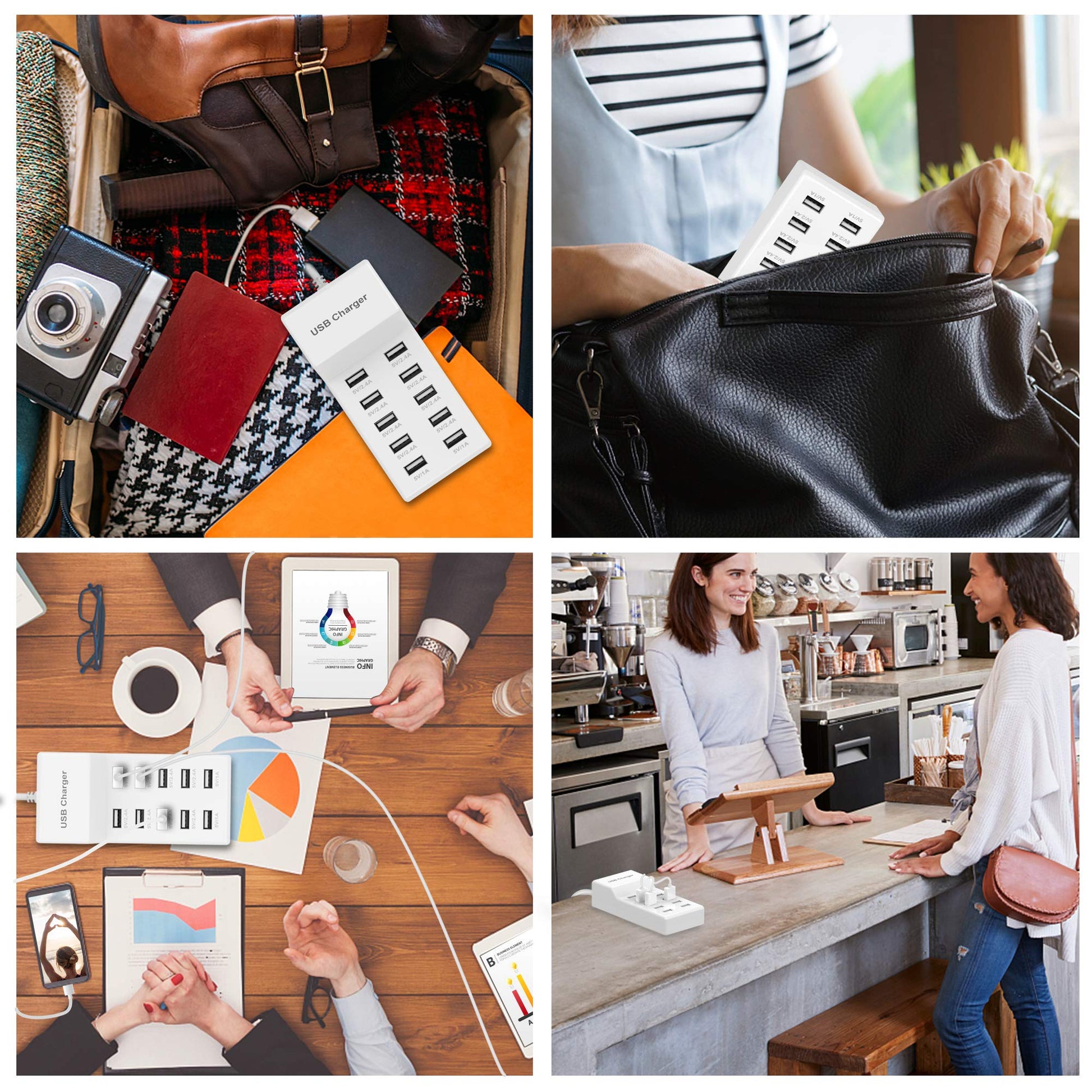 Color: White-10*USB-A Ports