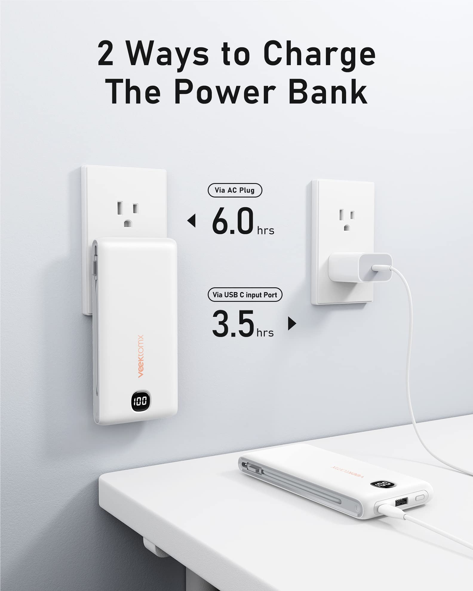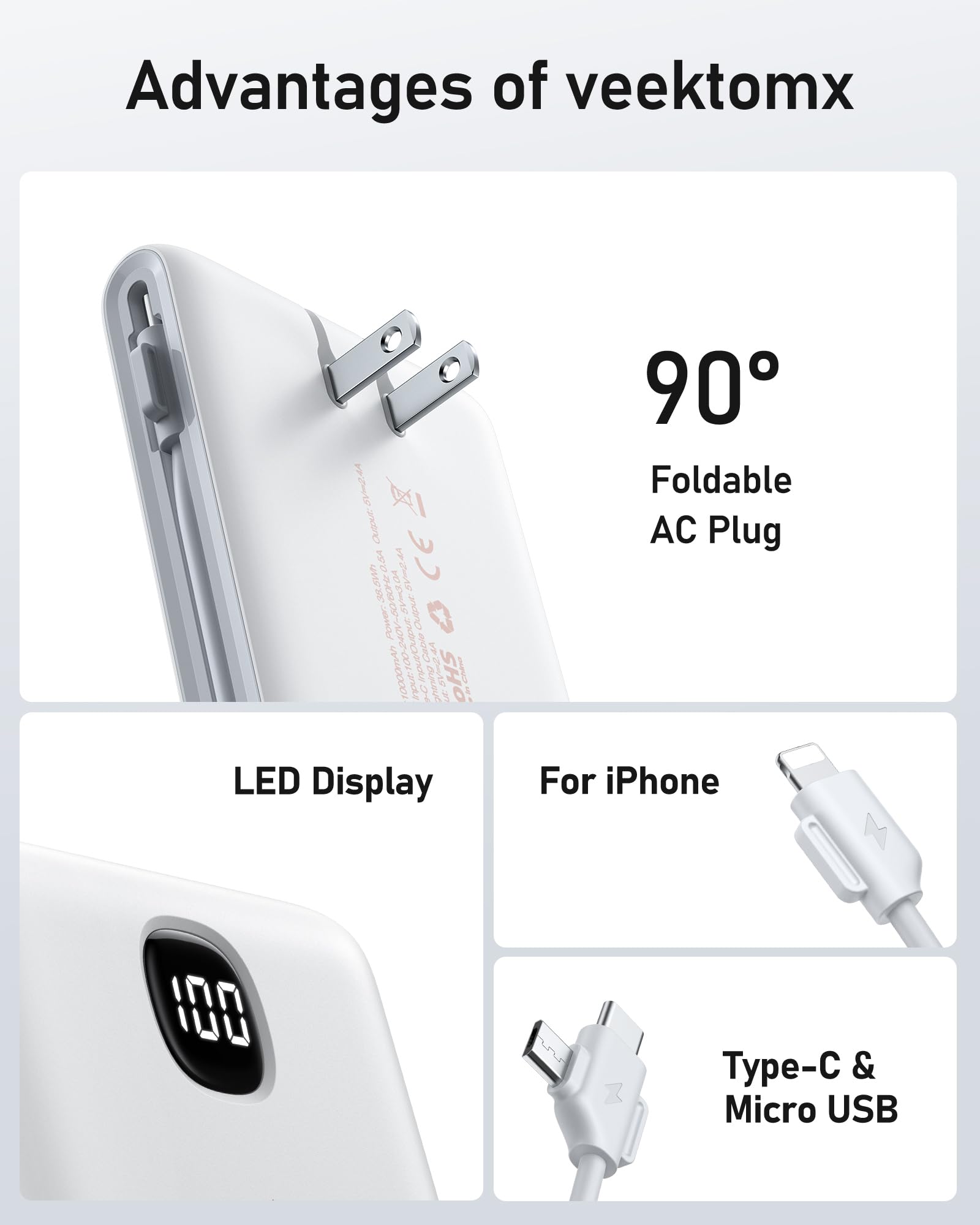 - [AC Wall Plug Power Bank] This portable charger built in AC Wall plug, compatible with iPhone, Android, and USB C devices. The built-in AC Wall plug allows you to recharge directly from the wall outlet. No need to carry charging cables for your smart devices anymore, travel charger for multiple devices, and your best travel accessories for your smart devices.