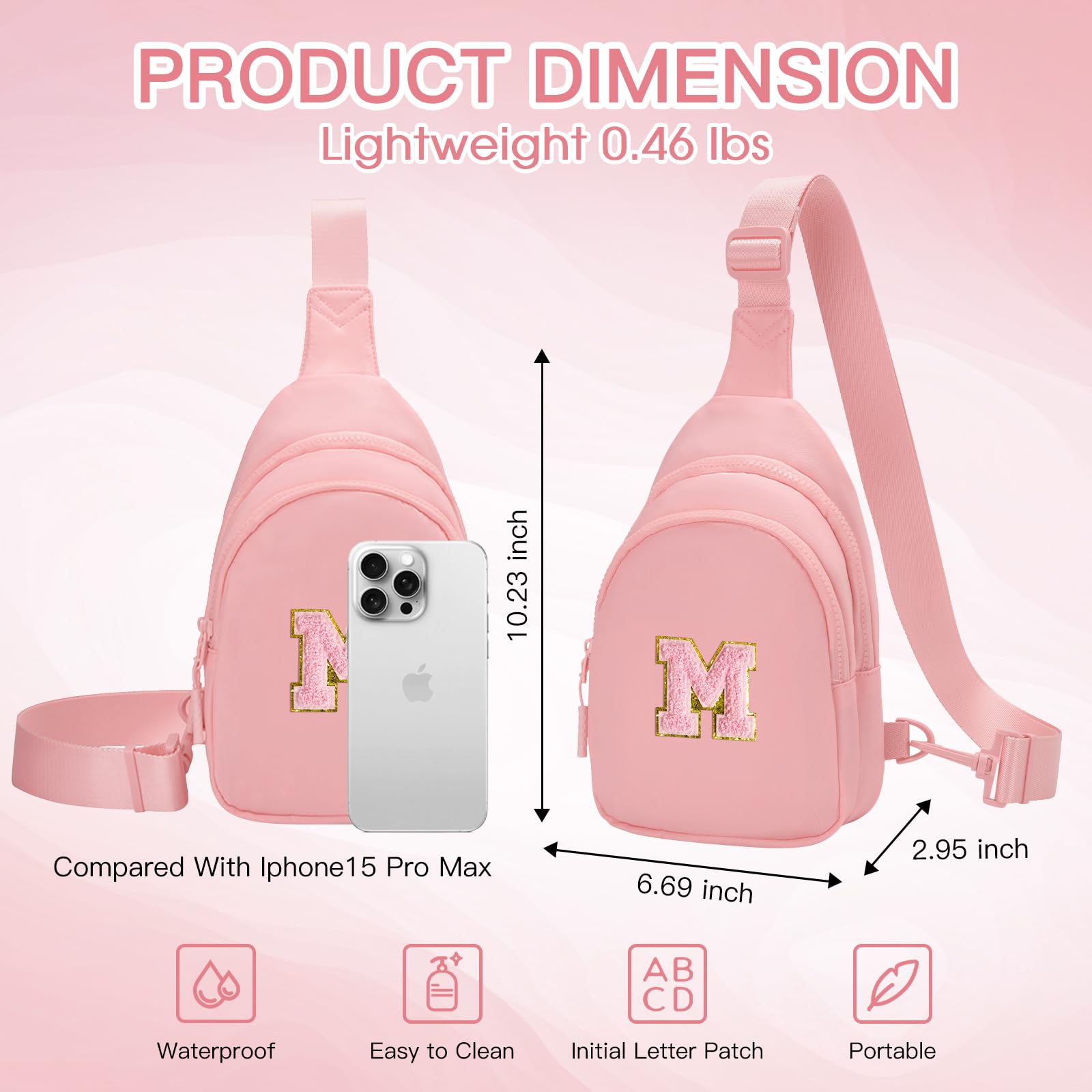 Viverte Gifts for Teen Girls 9-16 Year Olds - Personalized Preppy Initial Sling Bag (Light Pink-M)