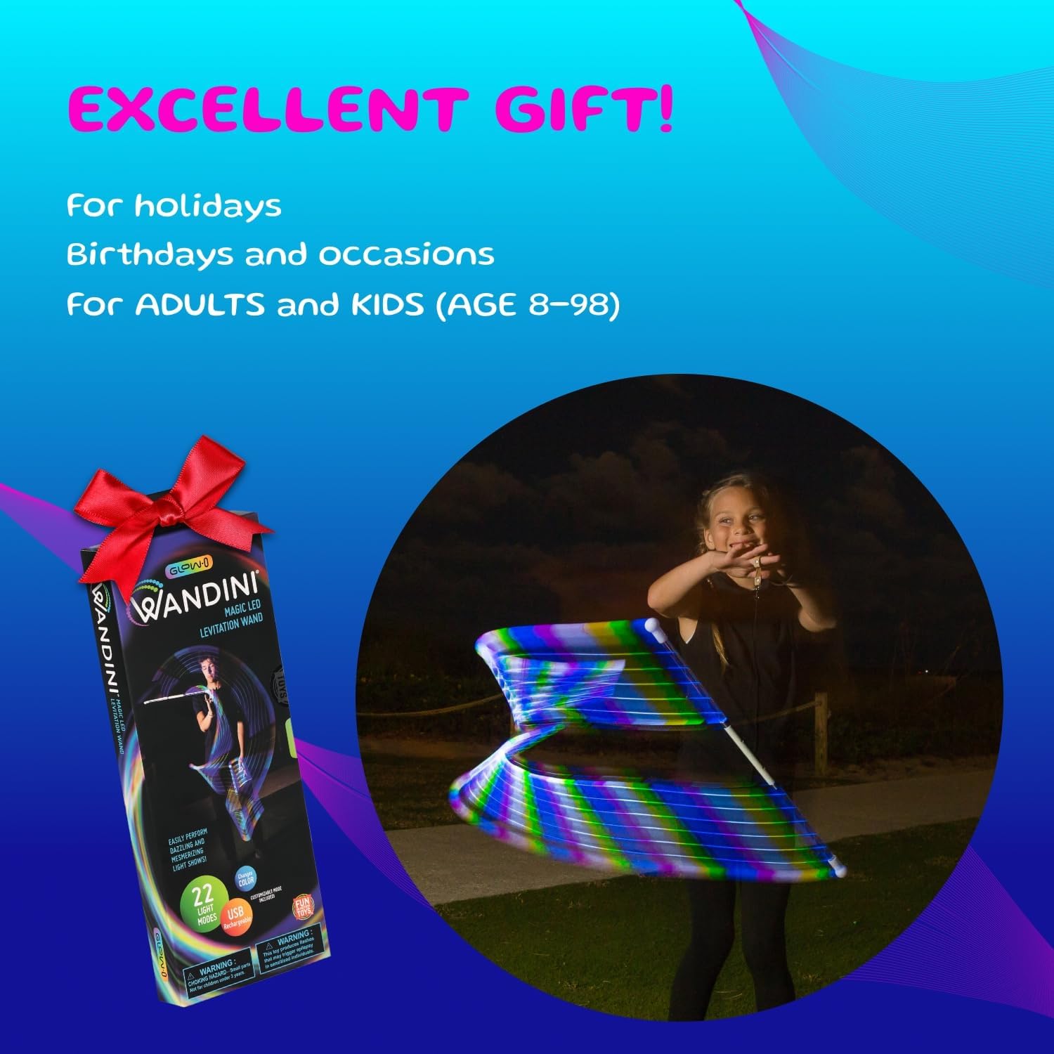 Wandini Glow.0 Magic Wand Collapsible LED Levitation Wand - USB Rechargeable Floating Wand - LED Light Wand with 22 Color Light Modes – Patented, Expertly Balanced LED Flow Wand Levitation Stick