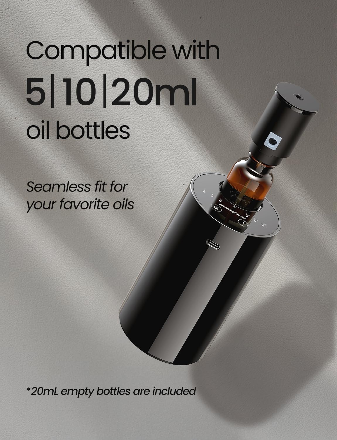 - 【Waterless Essential Oil Diffuser for Pure Aroma】Our advanced waterless diffuser technology transforms your favorite essential oils into a pure nano-mist without heat or water. Unlike traditional ultrasonic diffusers, it maintains the full strength and purity of each drop, offering a natural and convenient aroma experience. Perfect for those who want a scent diffuser that preserves essential oil integrity.