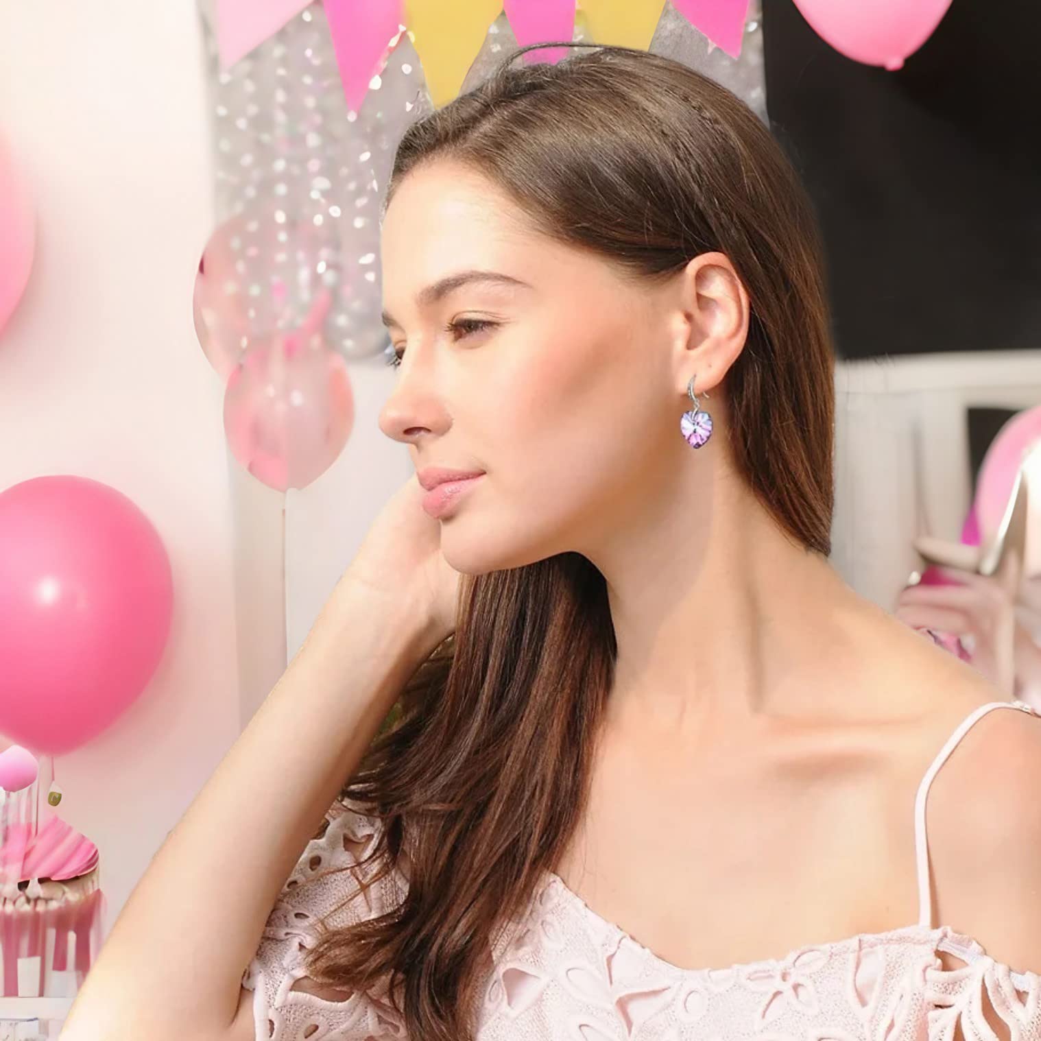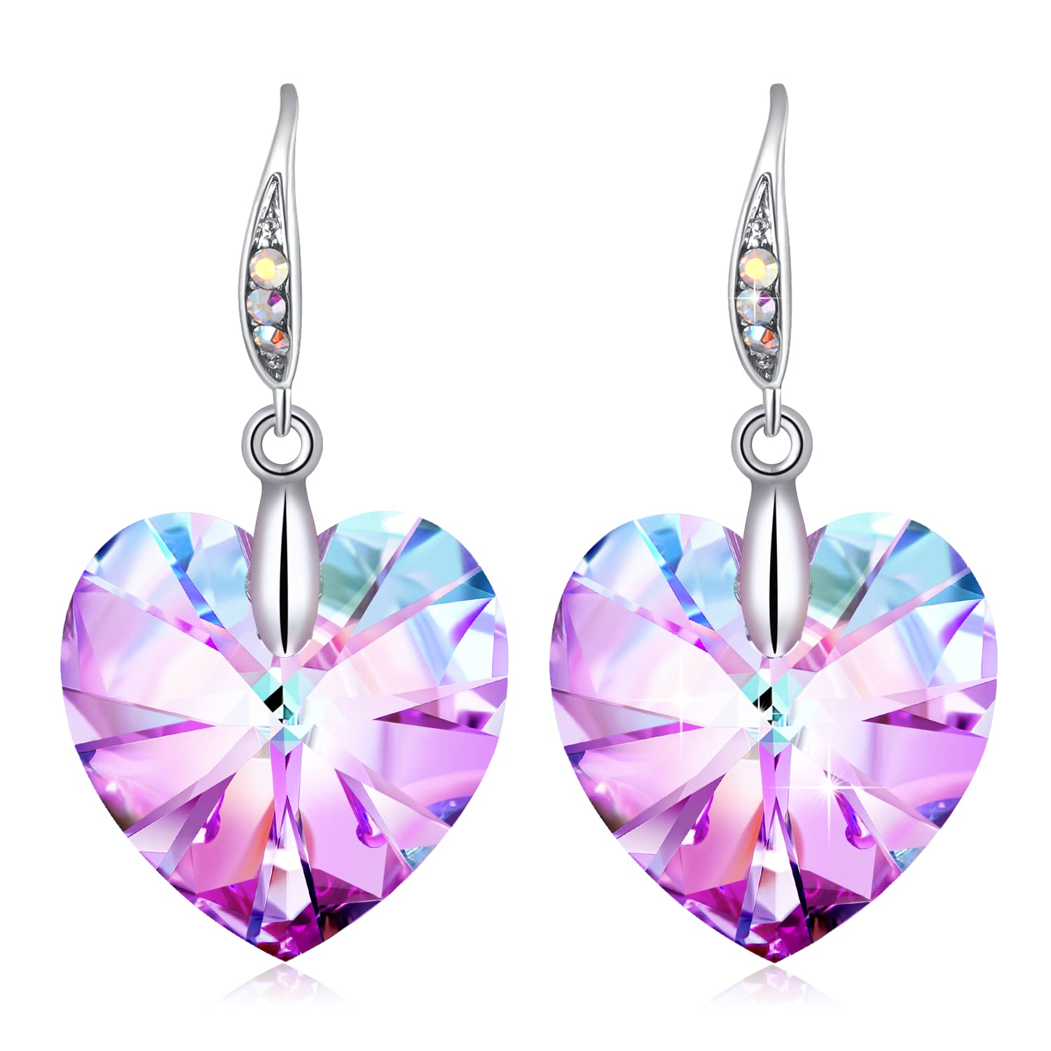 - Unique Design: Made from heart-shaped crystal, drop earrings radiates vibrant colors brilliance, creating an eye-catching display as the light catches every facet. The sleek metal hooks are accented with small, shimmering stones, adding touch of elegance