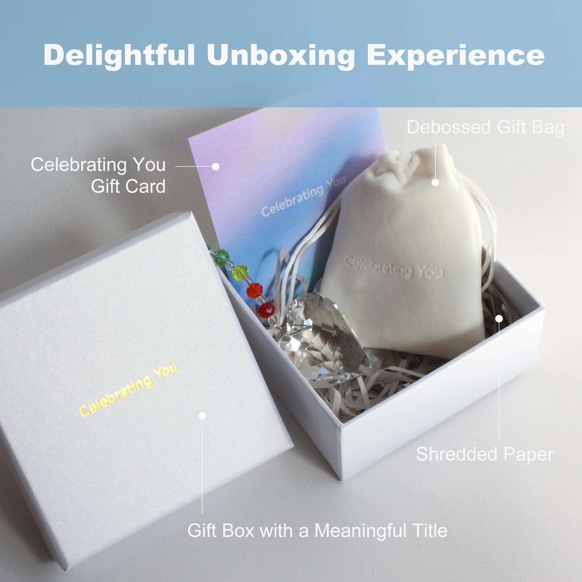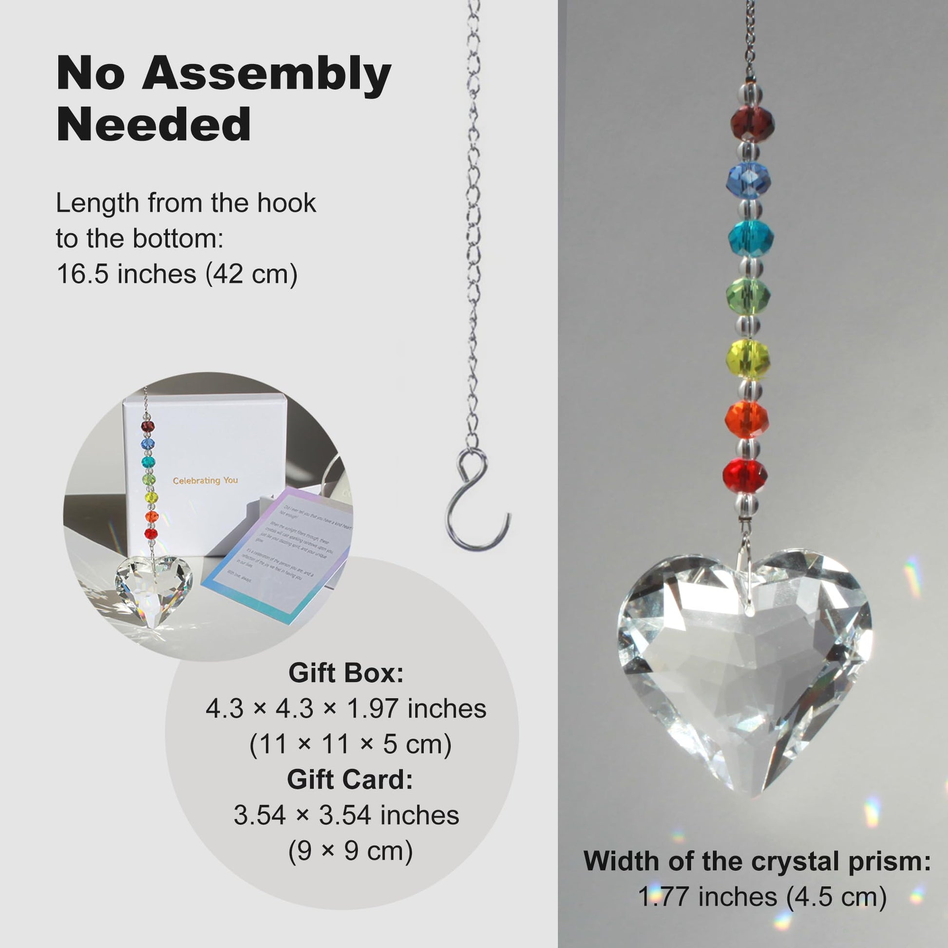 - Celebrate Your Loved One For Just Who They Are - Symbolizing your cherished one's kind heart, dazzling spirit, and unique glow, this gift features a stunning 45 mm crystal heart suncatcher, paired with a heartfelt message in a gift card, elegantly presented in a meaningful gift box. As sunlight filters through, it casts sparkling rainbows, expressing 'a celebration of the person you are and the person you are working to become'.