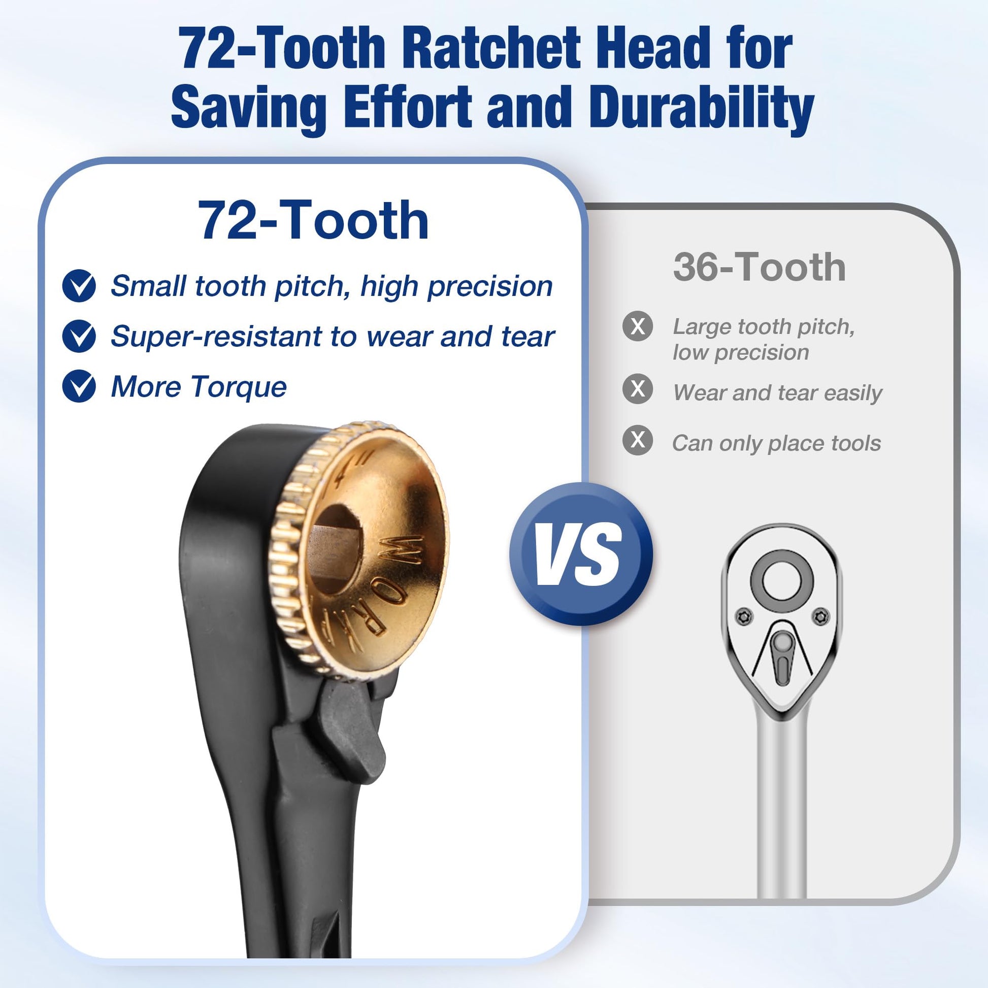 - Ratchet Mechanism: Our offset screwdriver set features a unique 72-tooth reversible ratchet system that ensures smooth ratcheting in both directions and provides high torque and precise adjustment. Simply push the bit into the square opening and flip the button to change direction to tighten or loosen the screw. This efficient system speeds up work and saves time