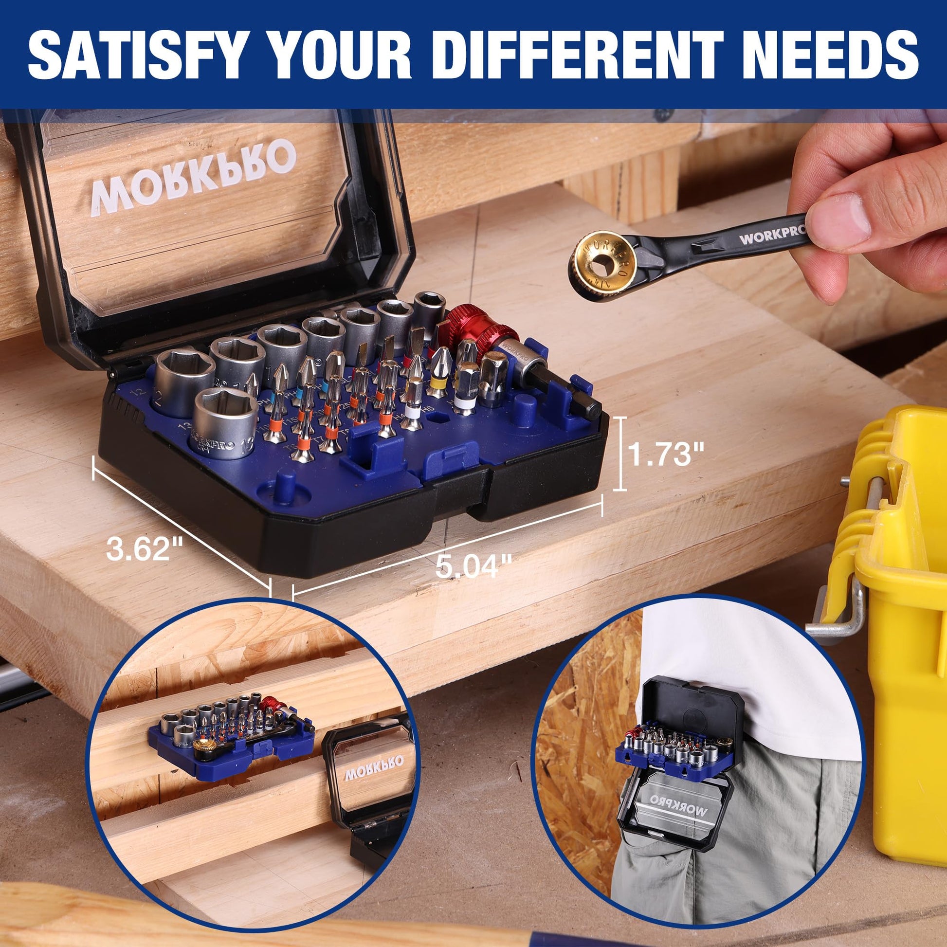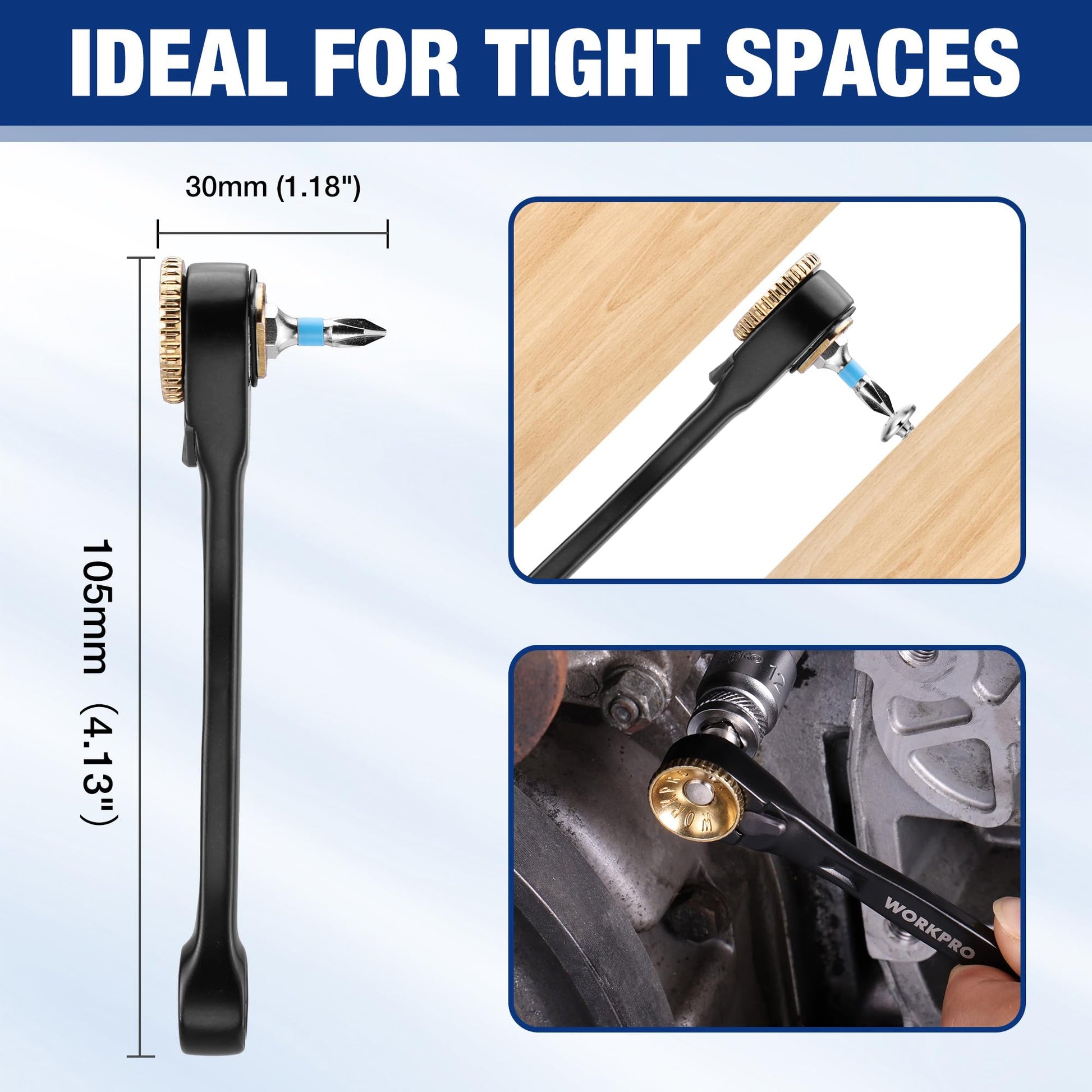 WORKPRO 34-Piece 1/4" Mini Ratchet Wrench, 72-Tooth, Right Angle Screwdriver Mens Gifts, 90 Degree Offset Ratcheting Screwdriver Pocket Mini Low Profile Ratchet Wrench Bit Socket Set for Tight Space