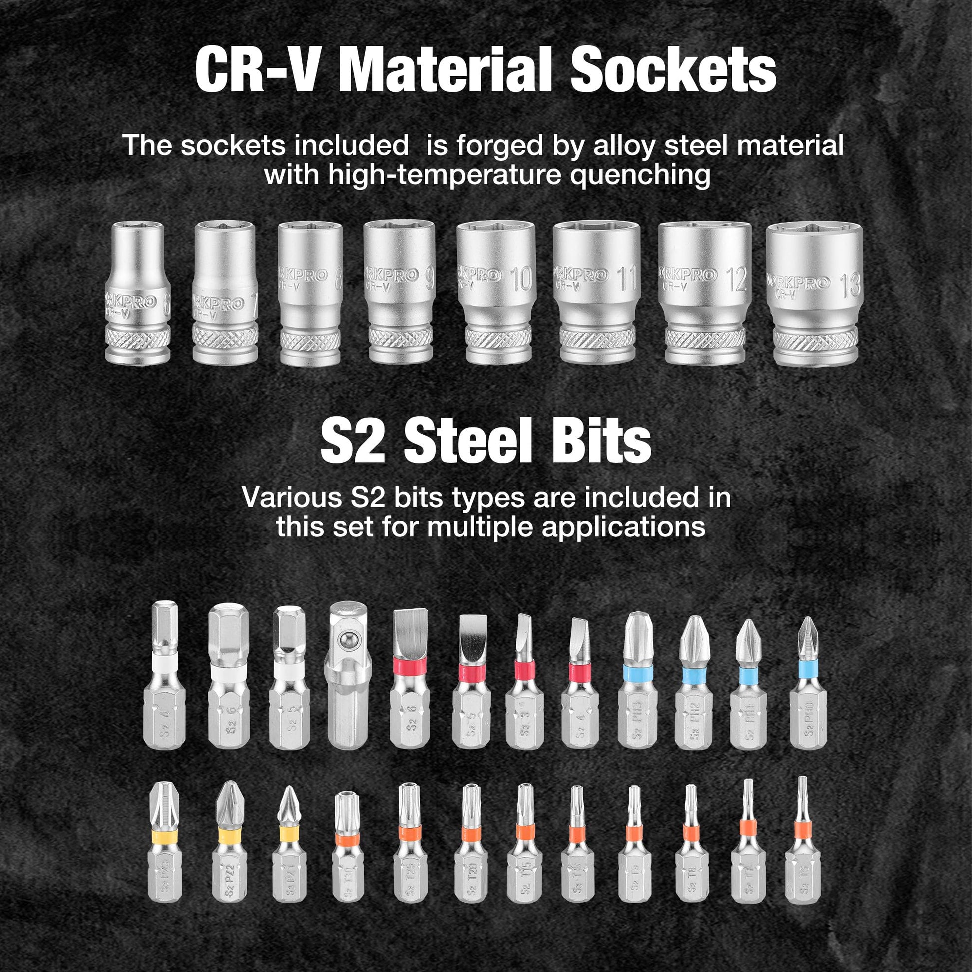 - 34-in-1 Tool Kit: Our 34 Piece screwdriver kit includes 23 drill bits and 8 socket sets. It also features a drill bit holder, adapter. Various slotted, Phillips, Pozidriv, Hexagon and Torx star bits, making it a comprehensive tool set. Whether you're experienced or just starting out, this mini ratchet set is a very professional addition to your workbench