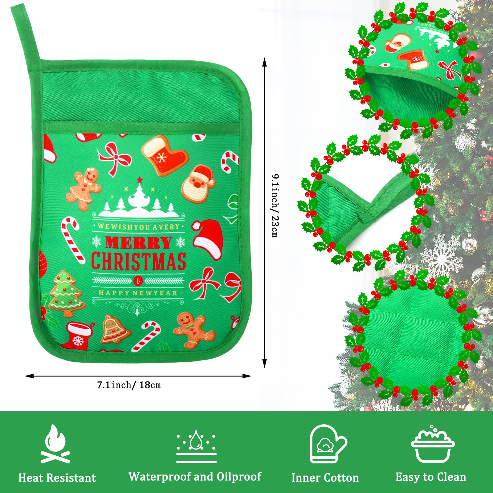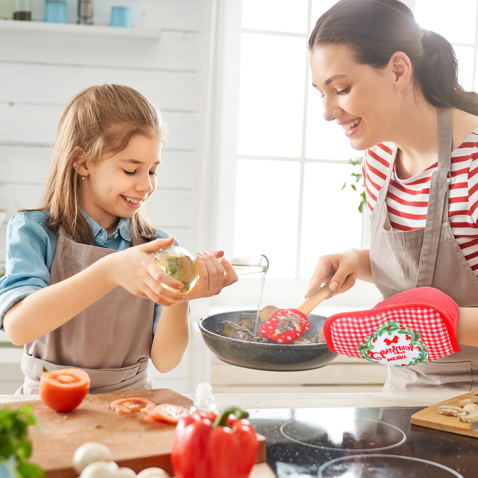 - Christmas Patterns: Christmas pot holders and silicone spatulas are mainly in red, green and white, with cute patterns printed on them, such as snowmen, cars, bells, socks, cane candy, snowflakes, gift boxes, Santa, Christmas trees and more, these elements are in line with the Christmas theme and can fill your home with a festive atmosphere
