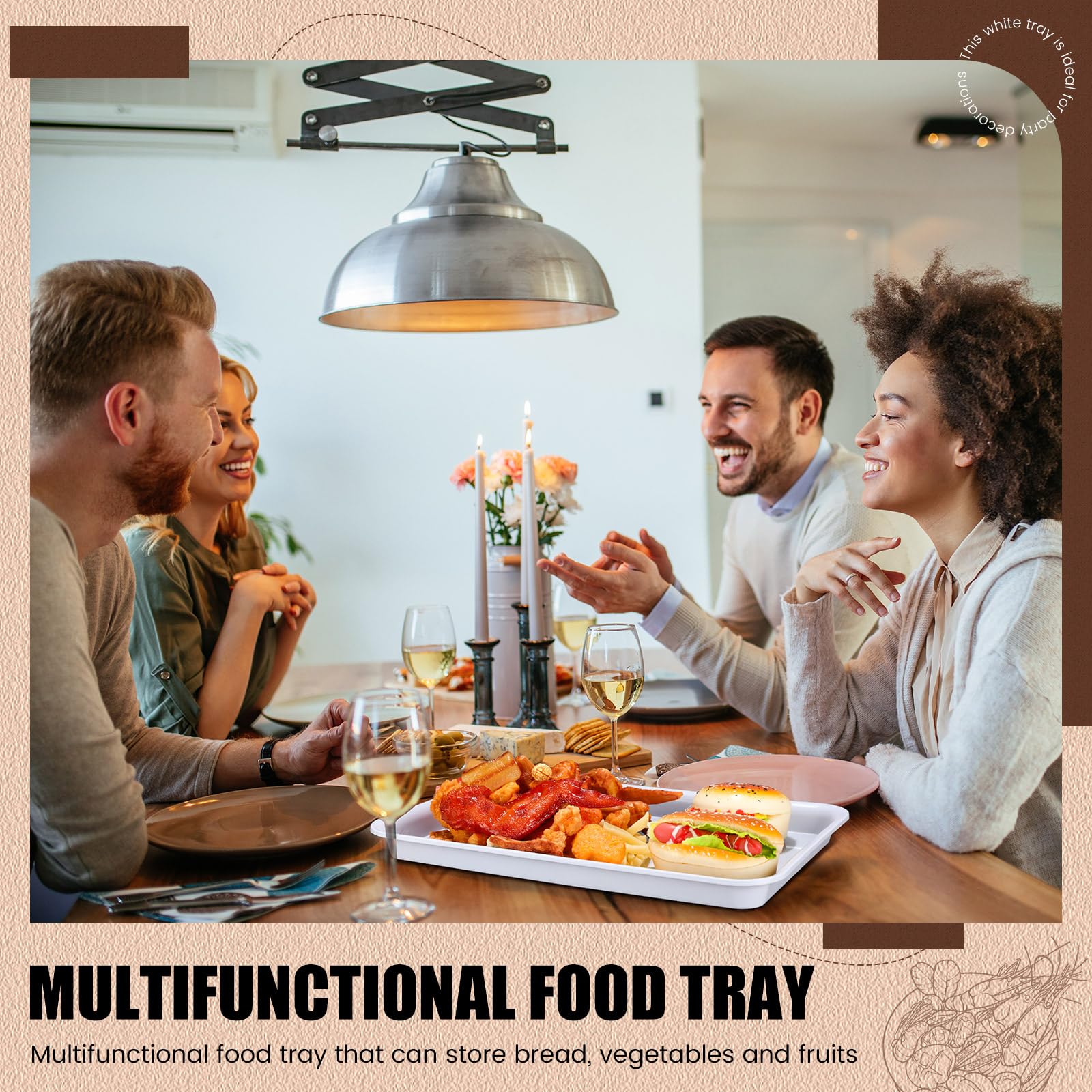 - Ideal for Entertainment: with its classic white design, this white tray is ideal for party decorations; You can fill your dining table or snack bar with dishes, snacks, cookies, fruit, desserts and other delicious treats for your guests to enjoy